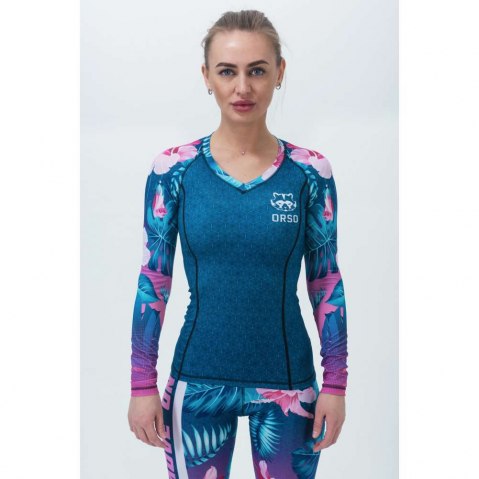 Рашгард ORSO Jungle из коллекции Classic с длинным рукавом произведен с учетом особенностей женской анатомии. Приталенный крой и плоские швы делают его максимально комфортным для ношения даже при сверхинтенсивных тренировках. Яркий и вызывающий дизайн гарантированно привлекает внимание и запоминается. При изготовлении используется высокотехнологичная компрессионная ткань Biflex Elastic. Материал обеспечивает 4х сторонний обхват мышц, поддерживая их в тонусе что позволяет улучшить тренировочные показатели .Помимо этого, ткань обладает повышенными влагоотводящими характеристиками, что делает тренировку более комфортной. Композиционная структура ткани позволяет поддерживать оптимальную температуру во время тренировки: тело не остывает и не перегревается.